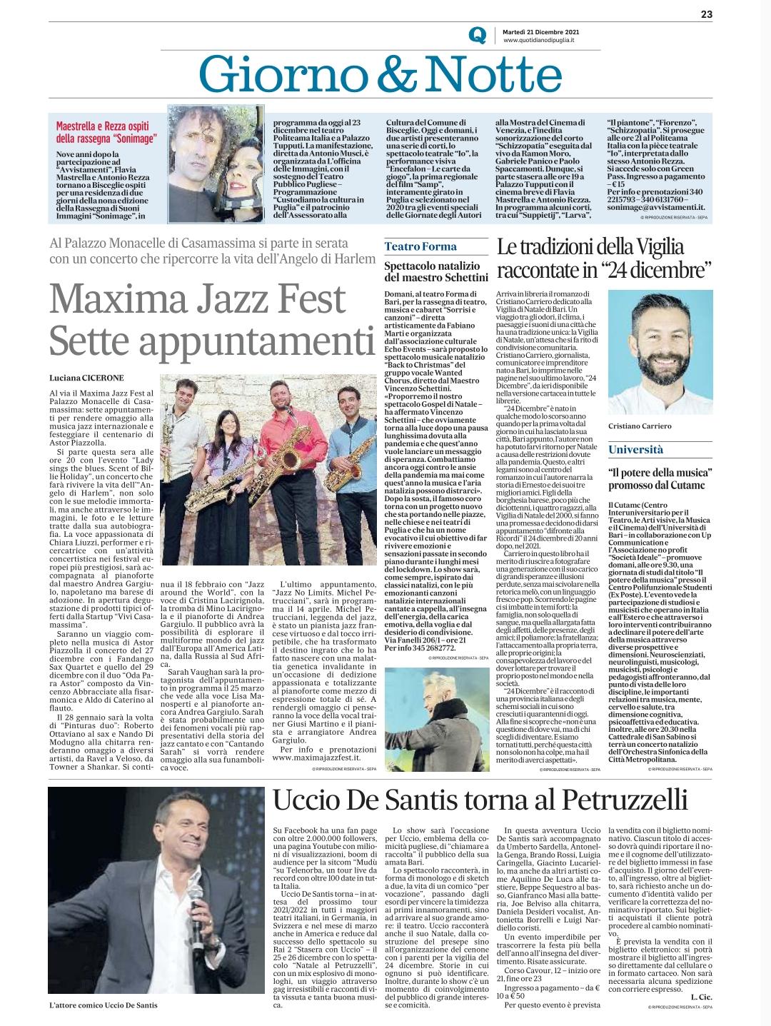 QUOTIDIANO DI PUGLIA del 21 dicembre 2021